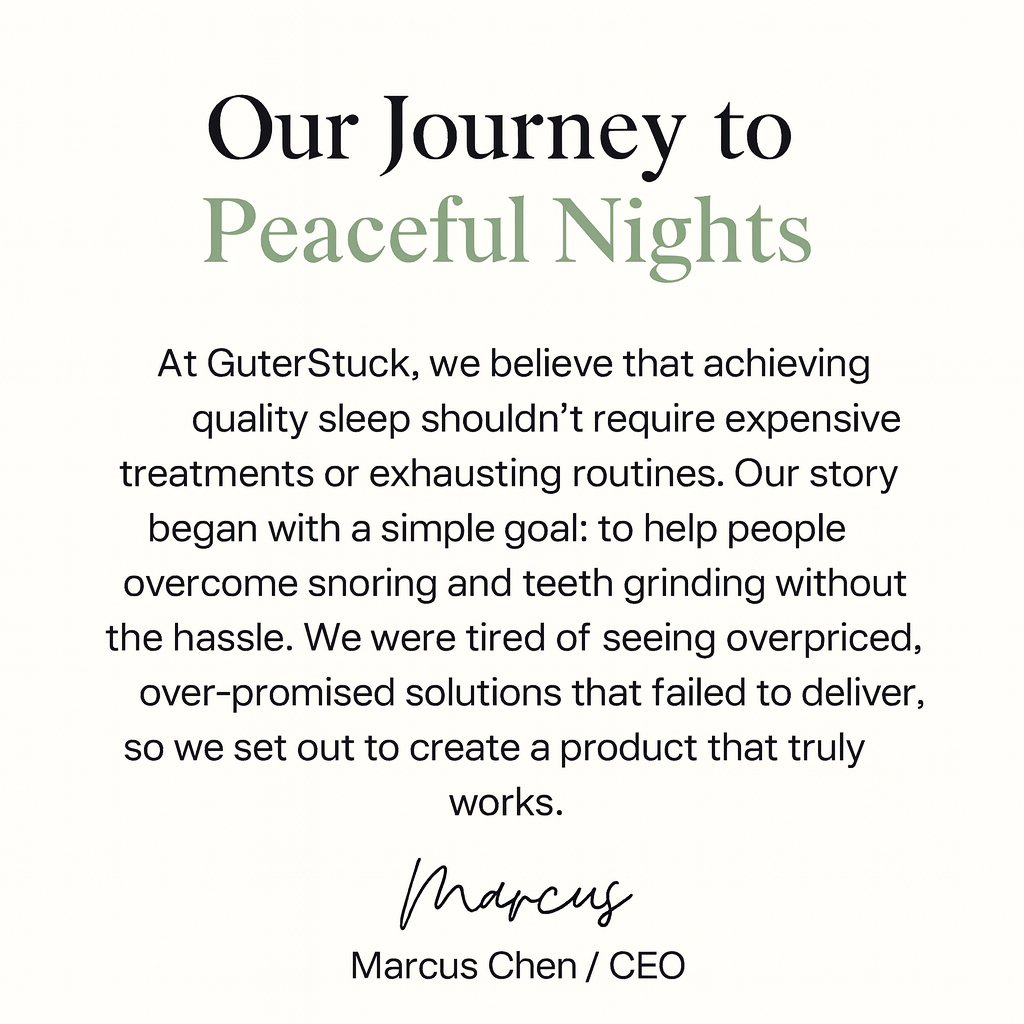 Join thousands of satisfied customers who've discovered the perfect solution to snoring and teeth grinding. Stop letting poor sleep affect your health, energy, and relationships. Experience the GuterStuck difference tonight.